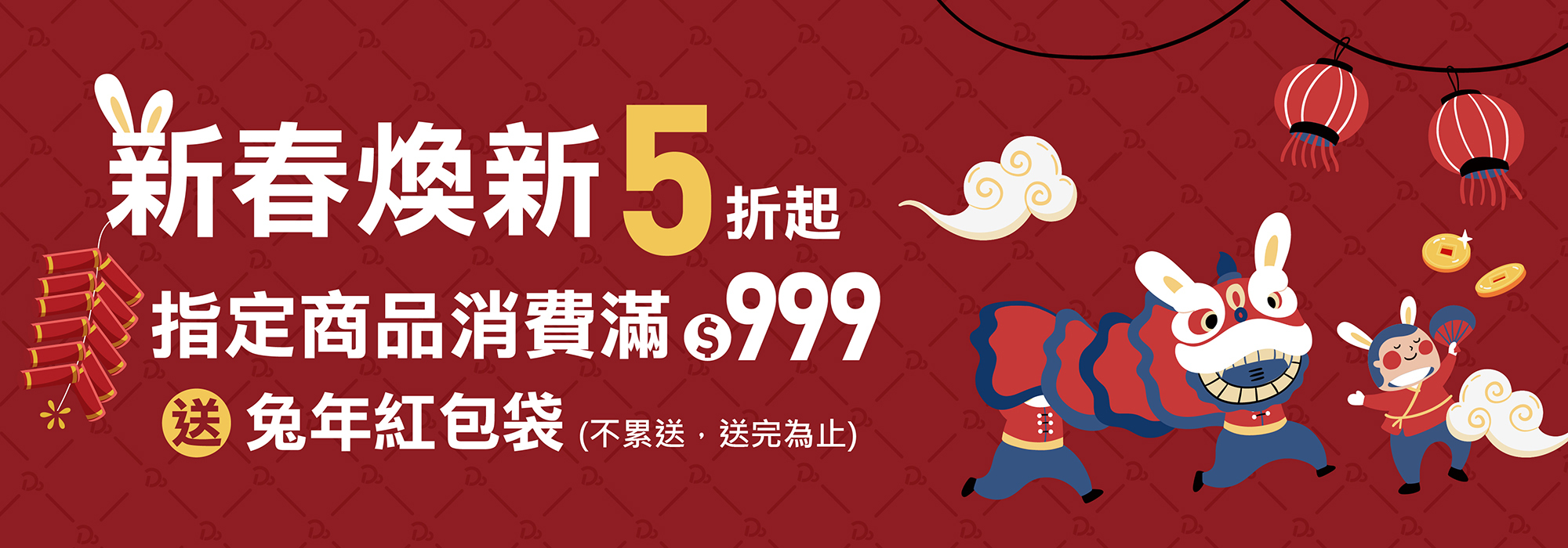 ◆ 指定商品消費滿 999 送 兔年紅包袋(數量有限送完為止,不累送)