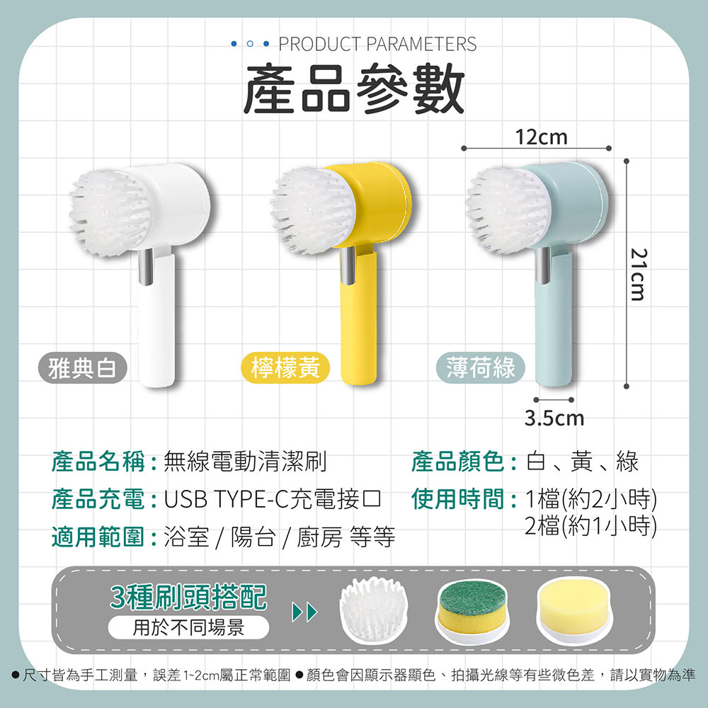 ✔️ 配備尼龍、海綿及鋼球刷頭,輕鬆去除各種污漬
