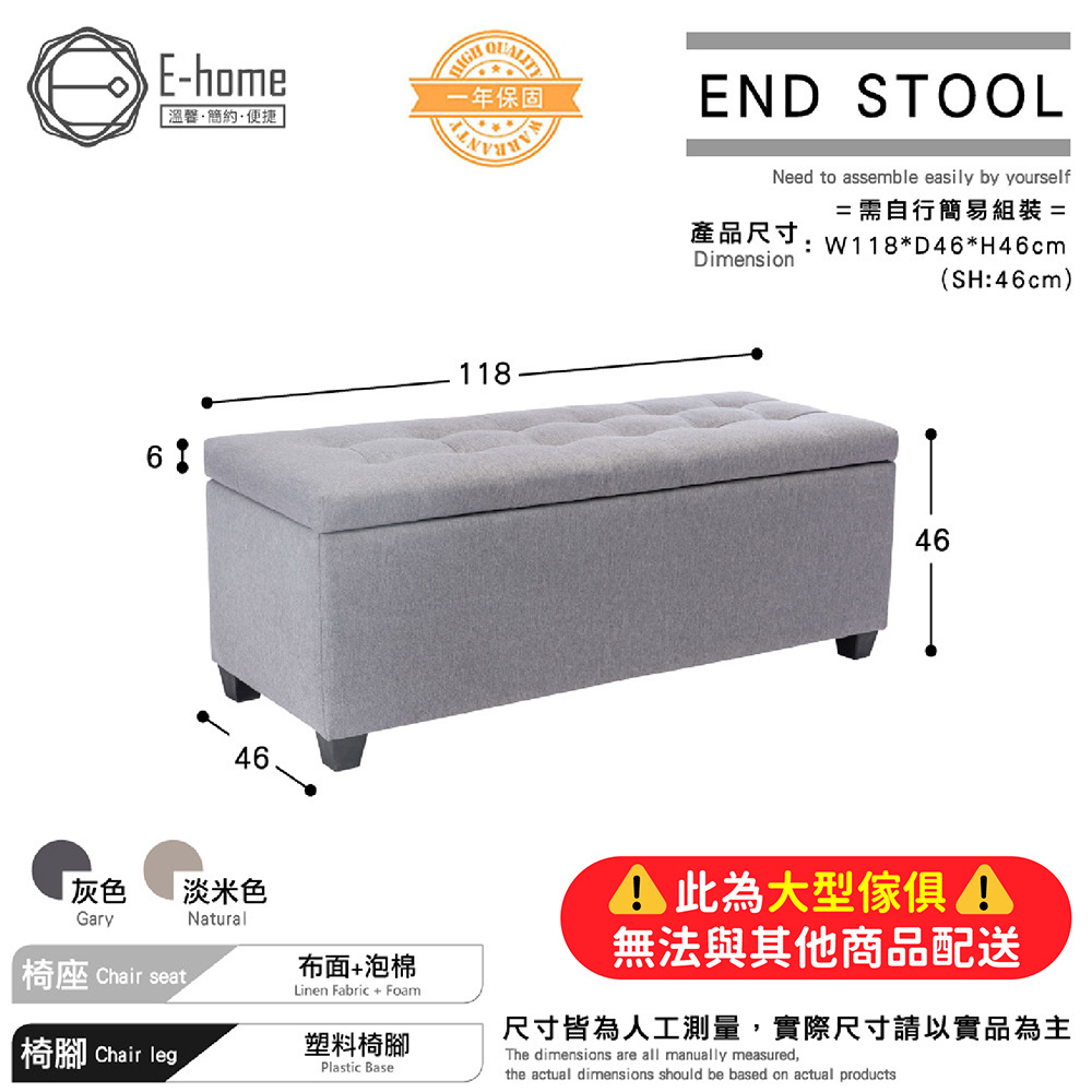 正常使用下,結構保固一年,立即添加到購物車,您將體驗此收納長方凳的功能性和舒適性!